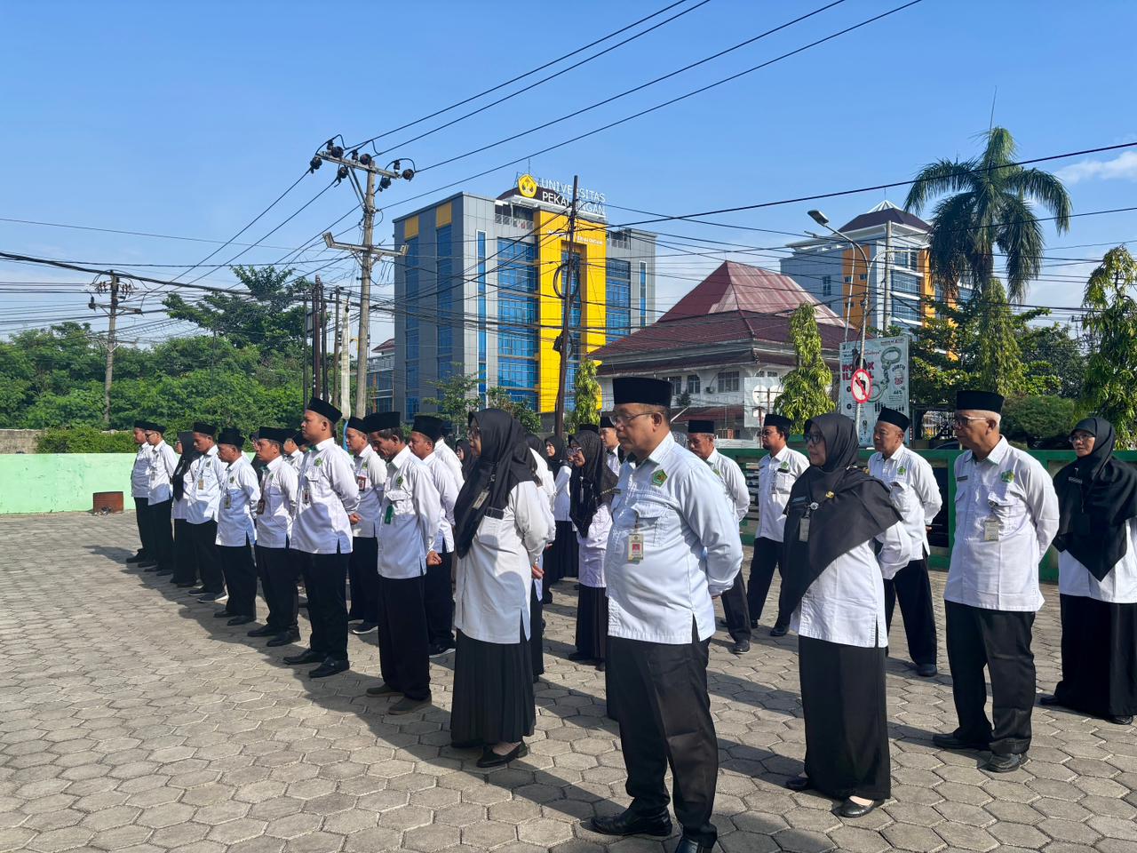Apel pagi yang berlangsung khidmat tersebut diikuti oleh seluruh pejabat struktural, fungsional, serta staf di lingkungan Kantor Kemenag Kota Pekalongan. Kegiatan diakhiri dengan doa bersama untuk kelancaran tugas dan pengabdian ASN Kemenag kepada bangsa dan negara.