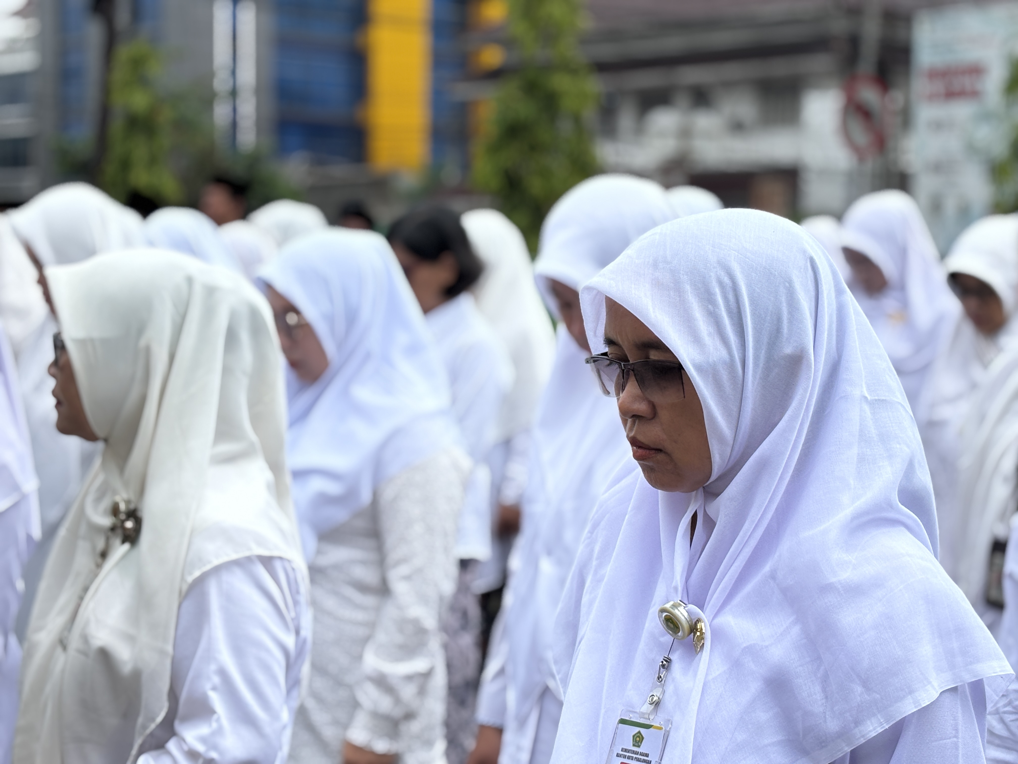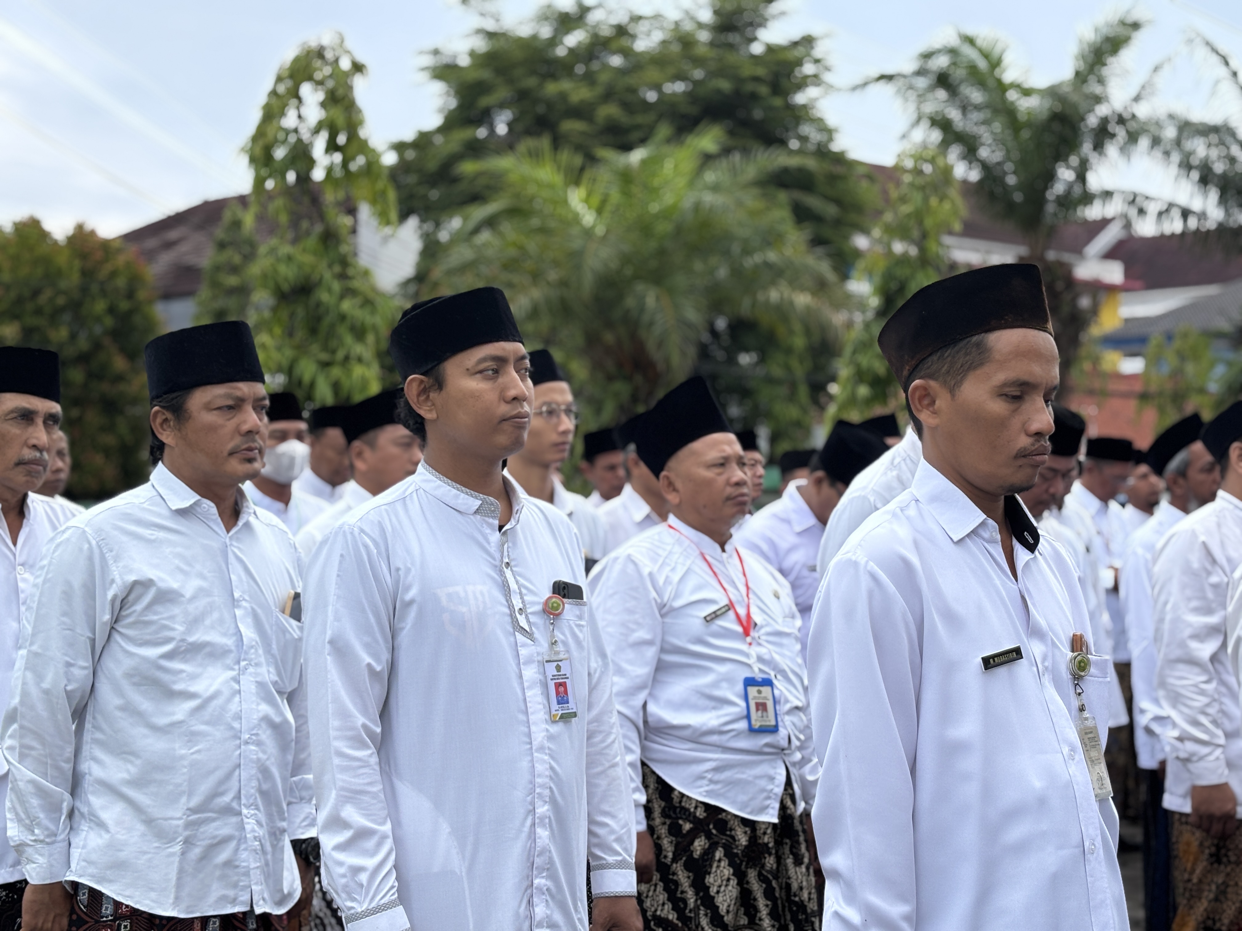 Suasana apel semakin khidmat dengan kekompakan seluruh peserta yang mengenakan busana bernuansa santri yaitu atasan putih dipadu bawahan sarung sebagai simbol kesederhanaan, keikhlasan, dan kebanggaan atas jati diri santri Indonesia.