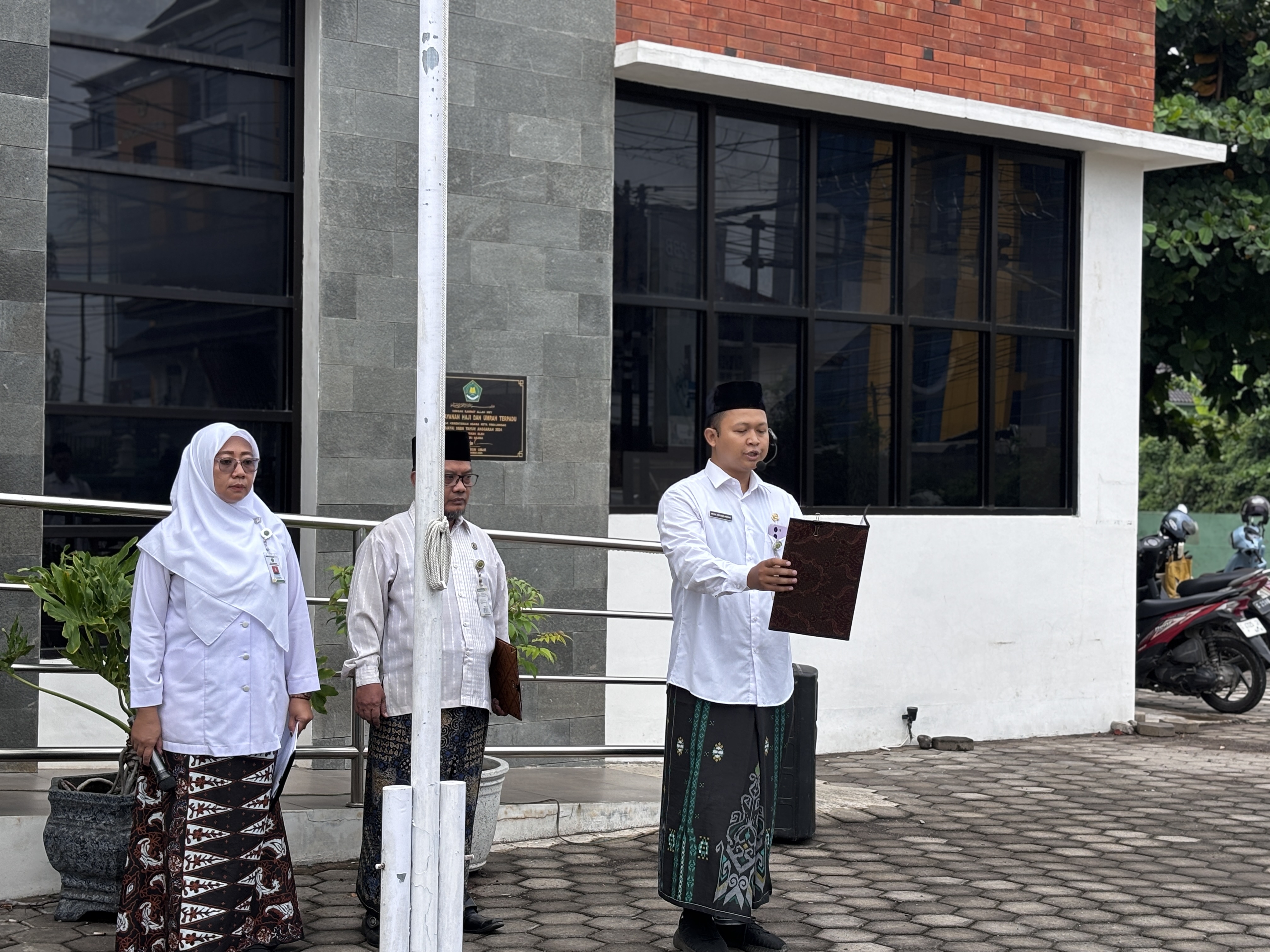 Kota Pekalongan (Humas) – Dalam rangka memperingati Hari Santri Tahun 2025, Kantor Kemenag Kota Pekalongan menggelar apel peringatan pada Rabu (23/10/2025) di halaman PLHUT Kankemenag Kota Pekalongan. Kegiatan berlangsung khidmat dengan diikuti oleh seluruh ASN di lingkungan Kemenag Kota Pekalongan, termasuk para ASN KUA Kecamatan se-Kota Pekalongan. Bertindak sebagai pembina apel yakni Plt. Kasubbag TU, H. Jaelani, M.S.I., sementara Supriyanto, S.Pd.I. bertugas sebagai pemimpin apel. Dalam apel tersebut juga dibacakan Resolusi Jihad 22 Oktober 1945 yang menjadi tonggak sejarah lahirnya Hari Santri Nasional, sebagai refleksi perjuangan ulama dan santri dalam mempertahankan kedaulatan Negara Kesatuan Republik Indonesia.