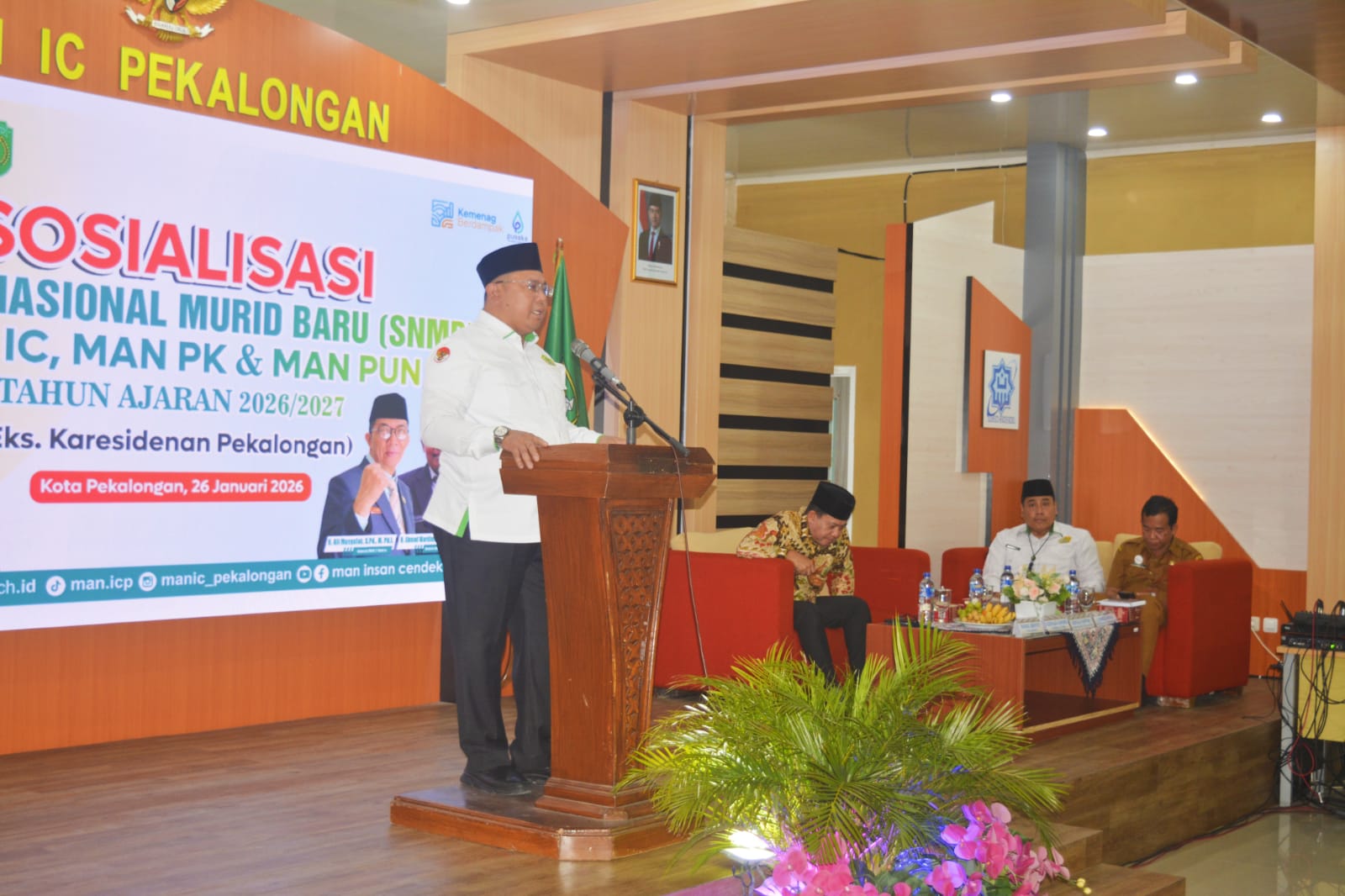 Kota Pekalongan (Humas) – MAN Insan Cendekia Pekalongan menyelenggarakan Sosialisasi Seleksi Nasional Murid Baru (SNMB) MAN Insan Cendekia, MAN Program Keagamaan, MAN Kejuruan Negeri, dan MAN Program Unggulan Nasional Tahun Ajaran 2026/2027 pada Senin (26/01/2026). Kegiatan yang berlangsung di Ruang Seni MAN IC Pekalongan ini diikuti oleh perwakilan MTs dan SMP Negeri se-Eks Karesidenan Pekalongan sebagai upaya memperluas informasi dan meningkatkan partisipasi calon peserta didik madrasah unggulan.